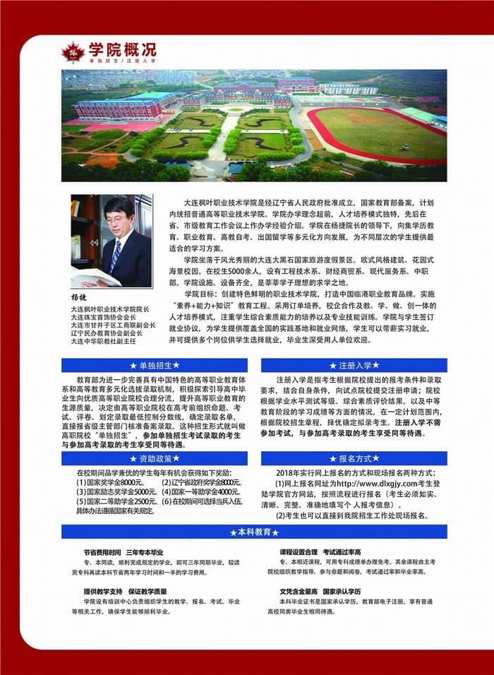 2018年大连枫叶职业技术学院招生简章